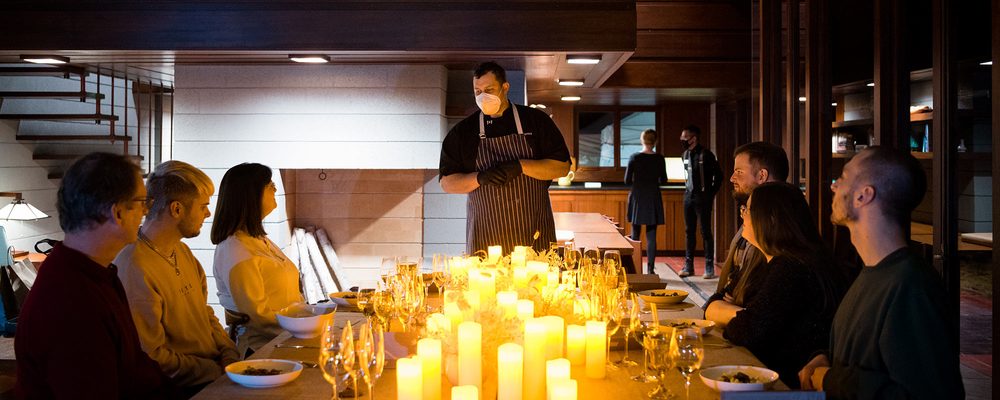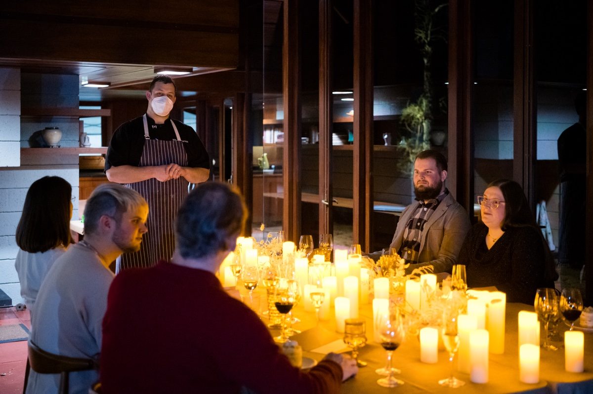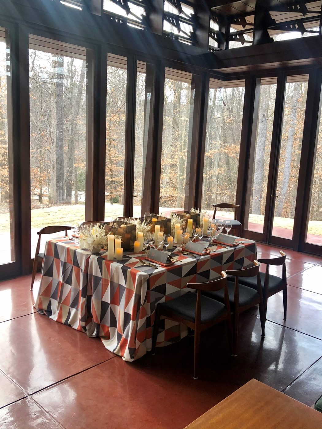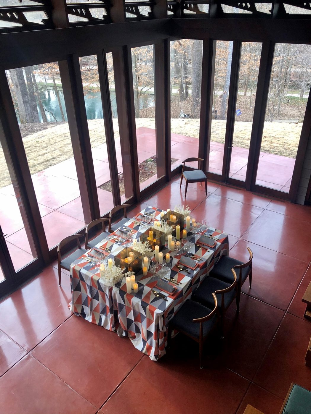 The evening begins with a cocktail reception followed by a guided expert architecture tour of the grounds and house, including the second floor which is normally closed to all visitors. Then, enjoy your catered five-course dinner with wine pairings in the living room of the Bachman-Wilson House overlooking the breathtaking beauty of nature at Crystal Bridges. Become the next dinner guests of the Bachman-Wilson House and give us a call to start your booking.