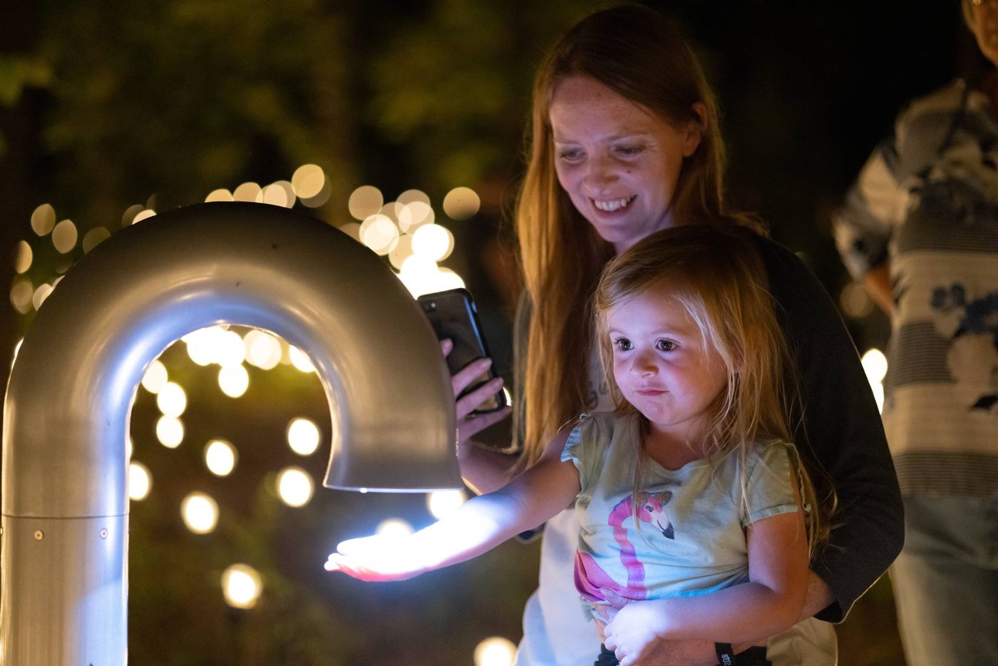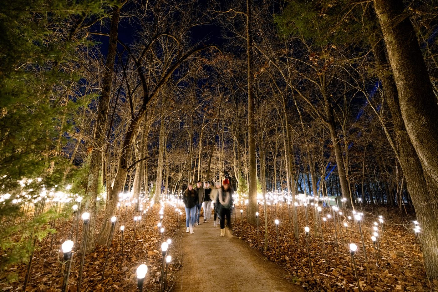 No, this is not a holiday light show—but it can be a great way to spend the holidays with friends and family. Listening Forest is an artist-designed group of interactive installations that use light, sound, and technology to create unique experiences that help us connect with nature and each other.