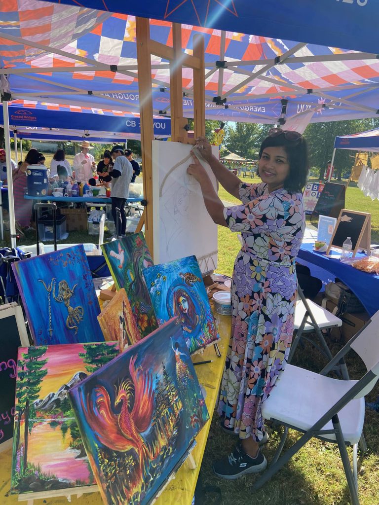 Anupriya’s paintings are a tapestry of vivid hues and intricate details, each canvas narrating a unique story that resonates with audiences of all backgrounds. Beyond her creative endeavors, she dedicates her time and talent to enriching local communities through voluntary work. Whether it’s lending her artistic vision to cultural events or nurturing the next generation of artists through teaching, Anupriya is committed to spreading the joy of creativity far and wide.
