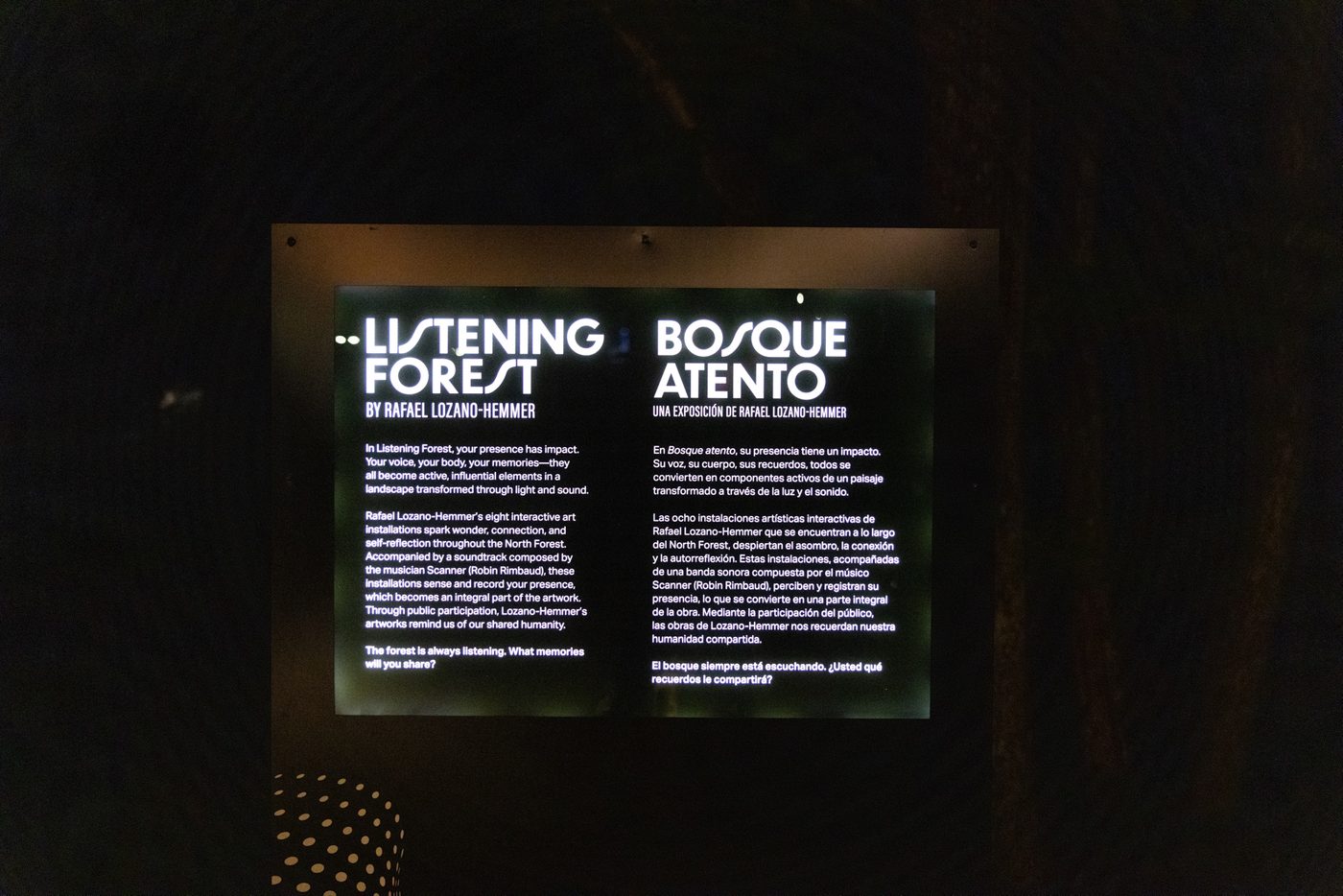 After a successful debut in August of 2022, Listening Forest, created by artist Rafael Lozano-Hemmer, returns for the third and final season of the outdoor, nighttime experience in the North Forest.