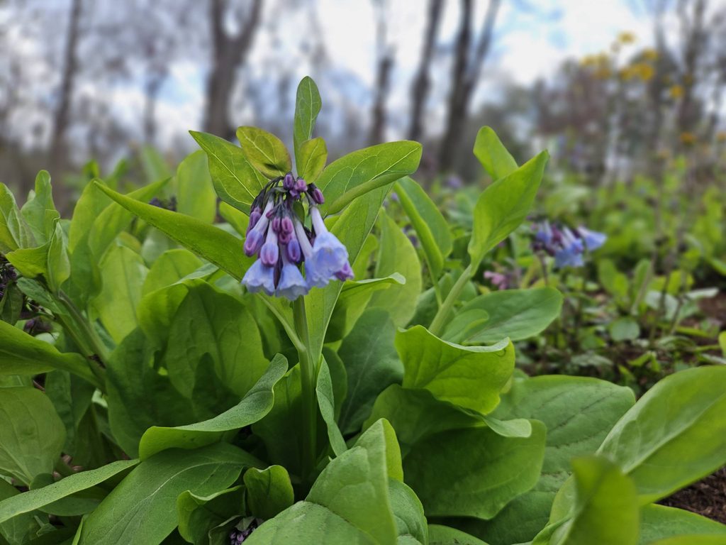 Flowering trees aren’t the only show pieces in the landscape. Native spring plants like golden ragwort (Packera aurea) make our gardens glow with shades of golden yellow. But the real spring showstopper comes from our collection of Virginia bluebells (Mertensia virginica). This native ephemeral plant (it goes dormant in summer) will steal your heart with its dangling lavender blue and pink flowers.