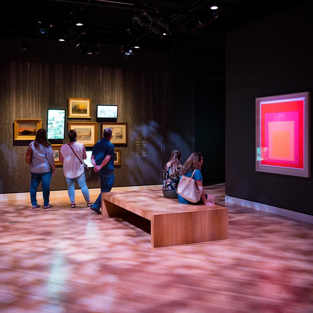 Step into Maxfield Parrish’s The Lantern Bearers with a life-size tableau vivant, or living picture. Discover a collection of works inspired by the four elements of air, earth, fire, and water, designed by artist Mark Dion. Enjoy a room of art curated from an artist’s point of view: Dyani White Hawk (Sičáŋǧu Lakota), whose work is part of the Crystal Bridges collection. Watch as Fayetteville-based artist Ziba Rajabi creates a new work of art before your eyes. Walk through the museum’s forest in the galleries with an immersive light-and-sound installation.