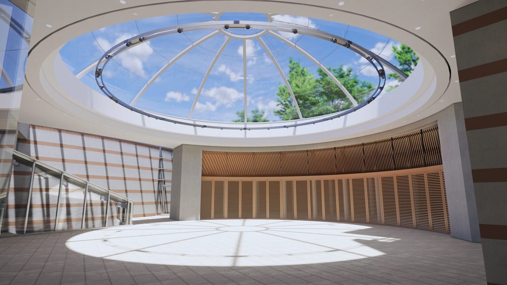 Crystal Bridges will be expanding the lobby into the courtyard area, as you can see from the rendering above. The completion goal for the project is spring 2021. The courtyard area will be enclosed in a glass dome, expanding the lobby from its current location all the way to the Museum Store. These updates will allow for more space in the lobby, protection from weather, more future programming opportunities, and a more convenient and comfortable visitor experience.