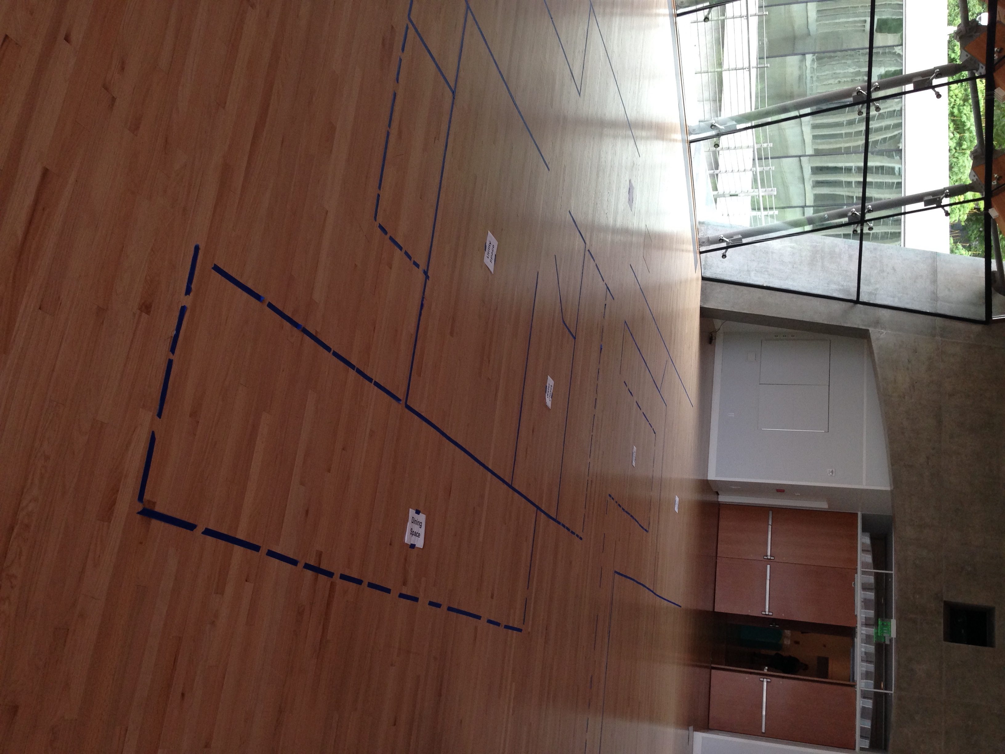 The floor plan of the Bachman Wilson House mapped out in tape on the floor of the Museum’s Great Hall.