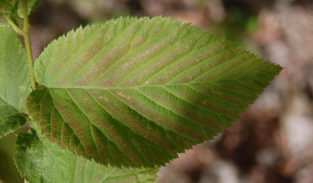 Leaf type: The oval-shaped leaves are 2-5 in. long and 2-2 1/2 in. wide. The leaves change from a dark green to an uneventful yellow in the fall. The blades of the leaves are lined with thin, irregular serrations.