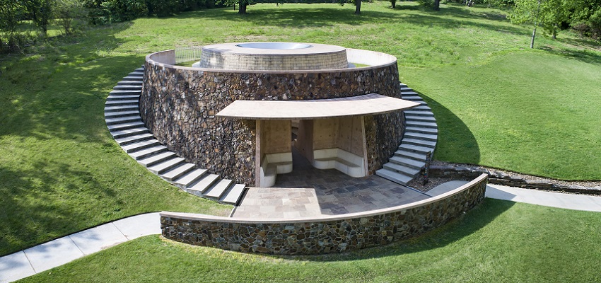Turrell’s Skyspaces are freestanding, concrete structures clad in stone that manipulate light coming through an ocular opening on the ceiling. Bench seating is offered for visitors inside, and The Way of Color at Crystal Bridges was the first Skyspace to feature LED lighting. All of these features come together for viewers to experience the sky with its changing effects of color, light, and mood in new and different perspectives.