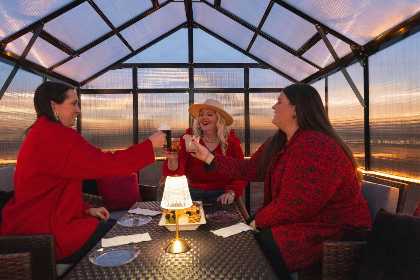 Keep your crew toasty with festive drinks and a cozy, private space—decked out with multi-color lighting, faux fur blankets, and a Bluetooth speaker.