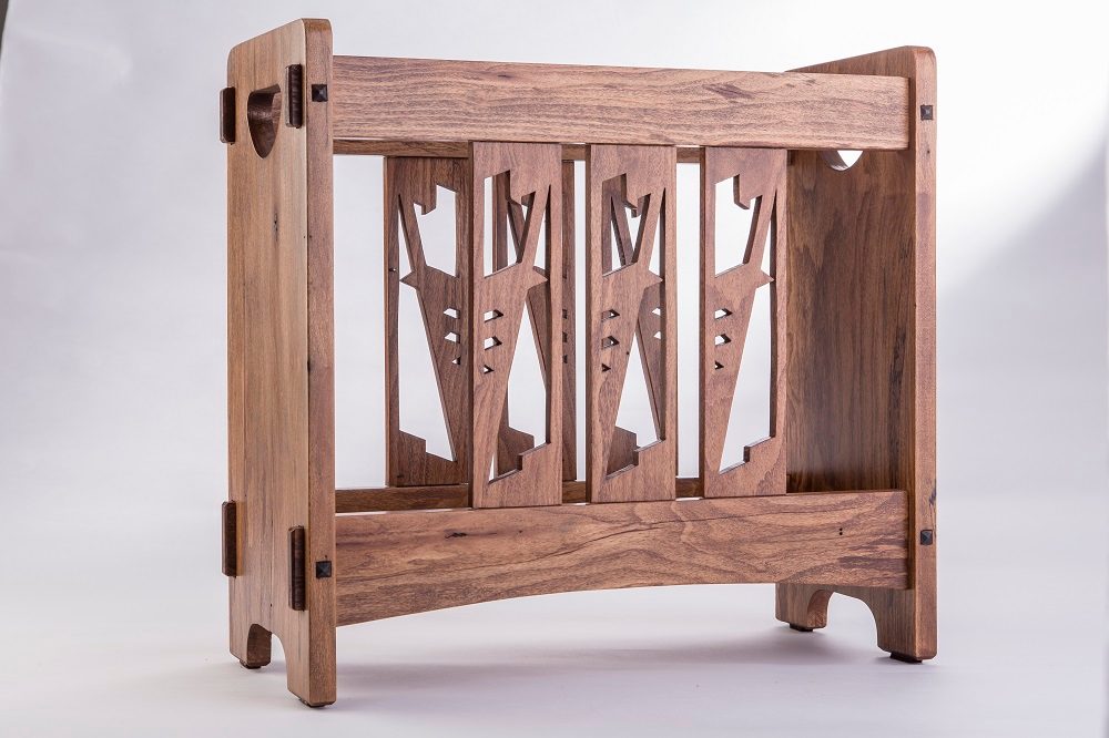 Magazine rack by Myron Williams, featuring details based on the clerestory windows found in the Bachman-Wilson House at Crystal Bridges. Photo by Dero Sanford.